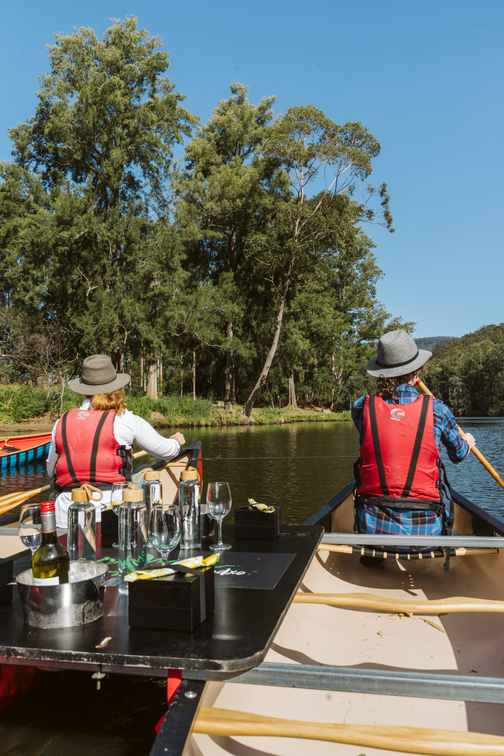 For those of you not accustomed to canoeing, our double canoe rigs are stable and virtually unsinkable. It’s like gliding on a catamaran as you wine and dine your way around this fresh water lake. The area we are exploring is very calm and the currents are mild, making paddling effortless. It’s an easy and safe way to get you into the waterways of the Southern Highlands & Shoalhaven and of course life jackets are supplied by our guides who accompany you on the trip. Also being fresh water, it’s a wonderful place to swim.